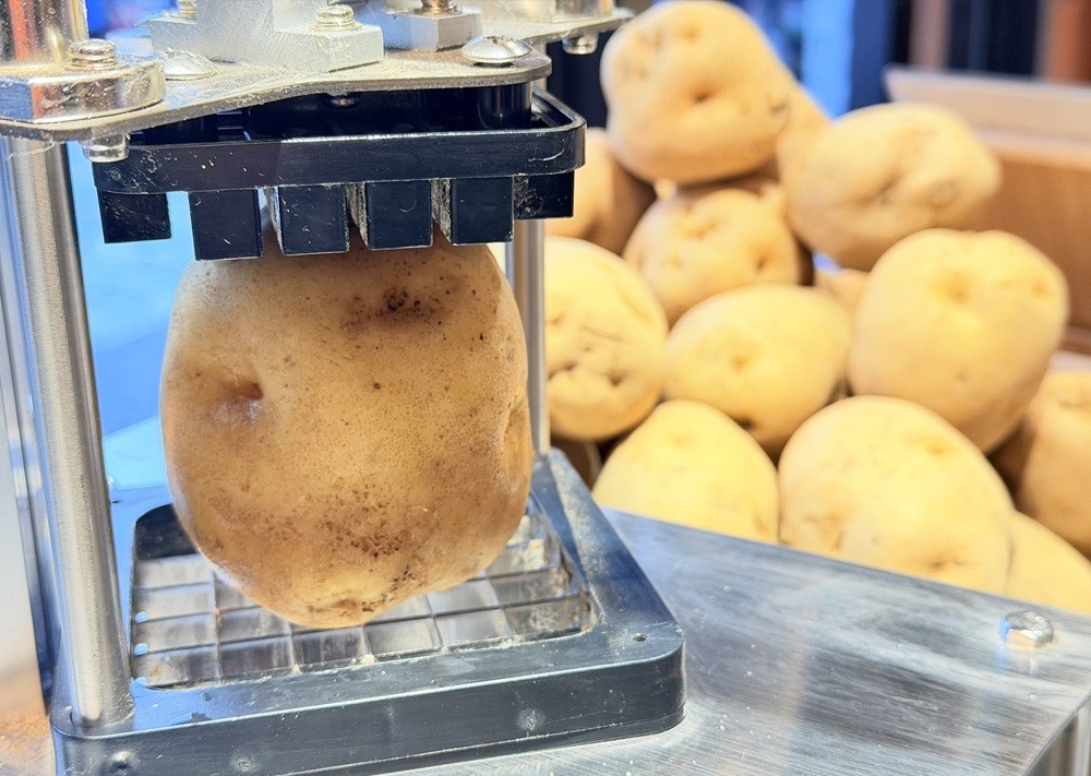 - 北海道産ジャガイモ100%: 冷凍品は一切使わず、直送された新鮮なジャガイモを注文を受けてからカット。みずみずしさと香りが違います。