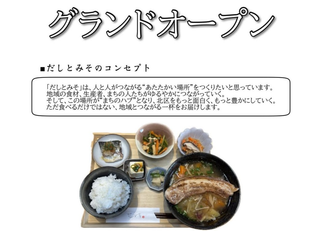 兵庫県神戸市北区、神戸電鉄「北鈴蘭台駅」の目の前に、心もお腹も満たされる注目の飲食店「だしとみそ」が2026年4月25日(土)にグランドオープンを迎えました!