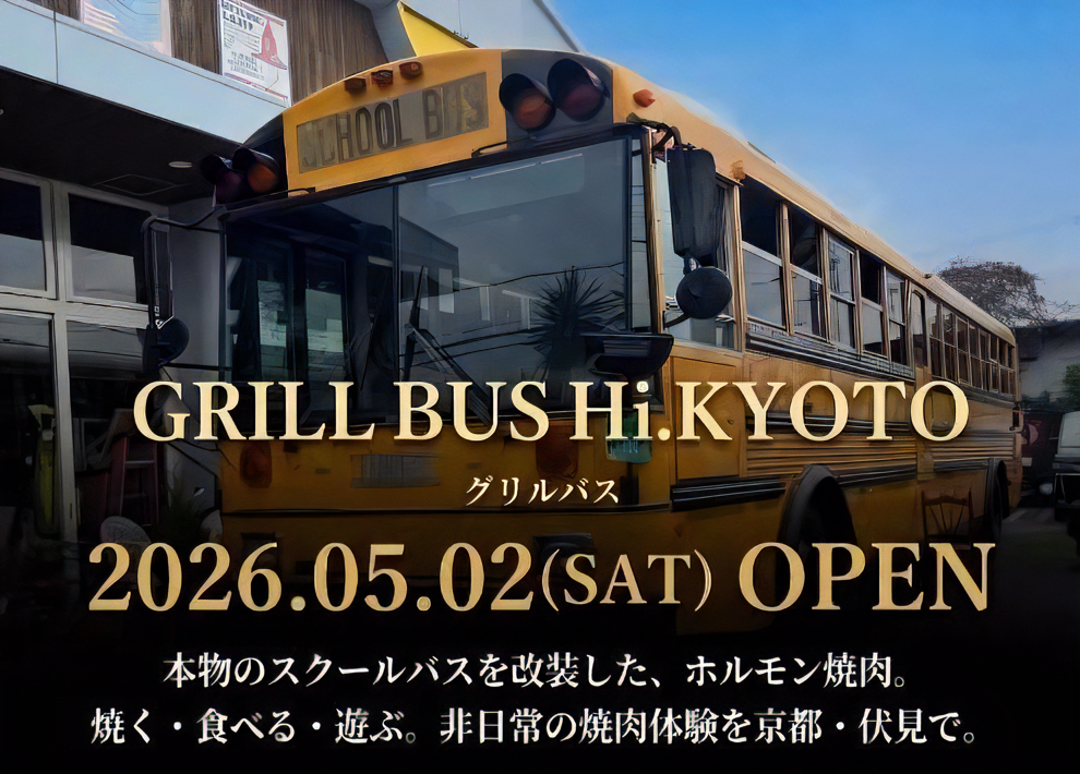 京都・伏見の地に、これまでの飲食店の常識を覆す規格外の新スポットが誕生します。その名も『GRILL BUS Hi.KYOTO(グリルバス ハイ キョウト)』。