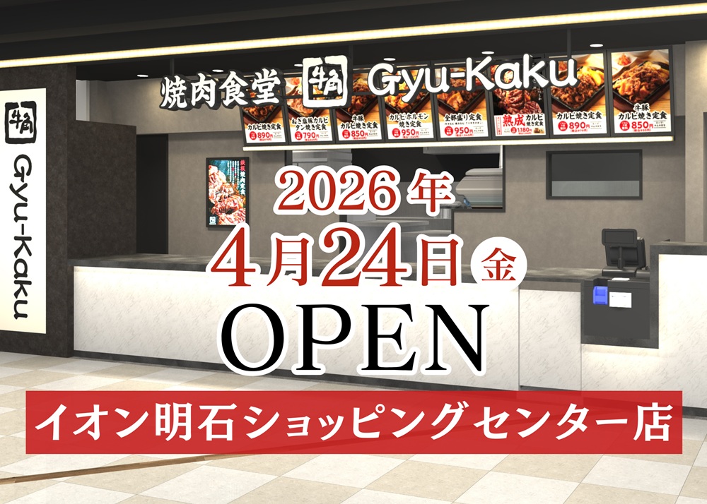兵庫県の焼肉好きの皆様に朗報です! 国内焼肉チェーン店舗数No.1を誇る「牛角」が手掛けるフードコート専門店『牛角焼肉食堂 イオン明石ショッピングセンター店』が、2026年4月24日(金)にオープンしました。