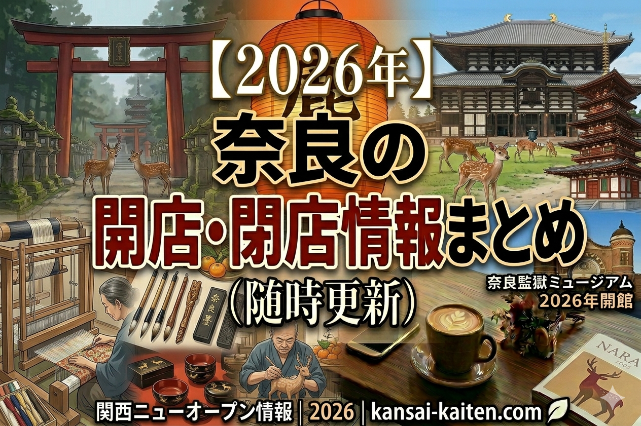 2026年に奈良県内でオープンする新しいお店や、惜しまれつつ閉店するお店の情報をまとめています。