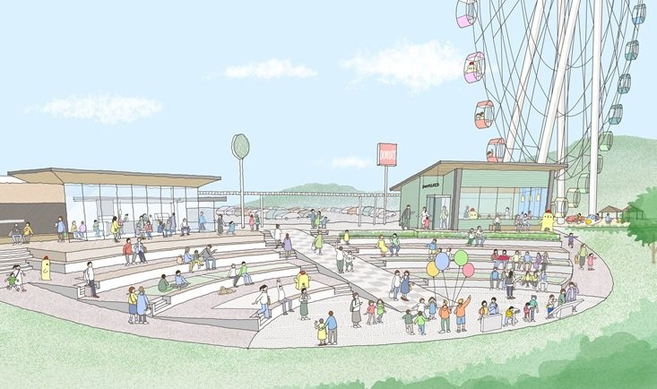 淡路SA(下り)フードコートから観覧車近くの屋外エリアに独立