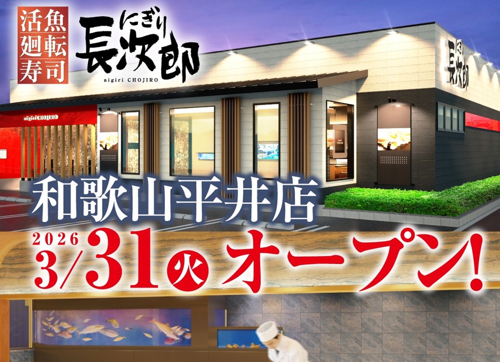 活きの良さと、目の前で板前が握る贅沢感を味わえる「活魚廻転寿司 にぎり長次郎」が、ついに和歌山市平井にグランドオープンしました。