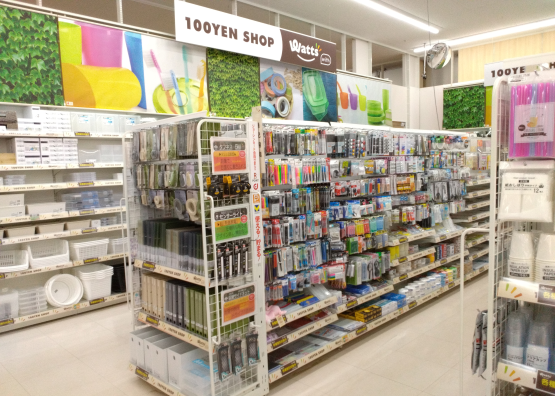 「ワッツウィズ」は、生活雑貨からキッチン用品、文房具、衛生用品まで、厳選されたアイテムが並ぶ100円ショップです。