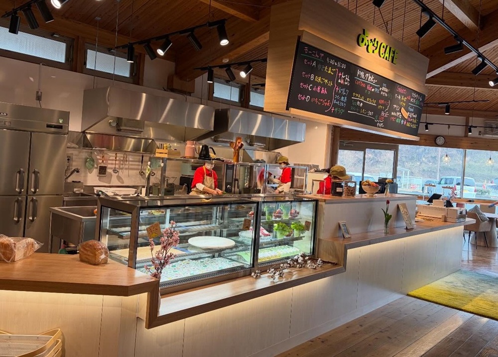 道の駅内にある開放的な木のぬくもりを感じるカフェ